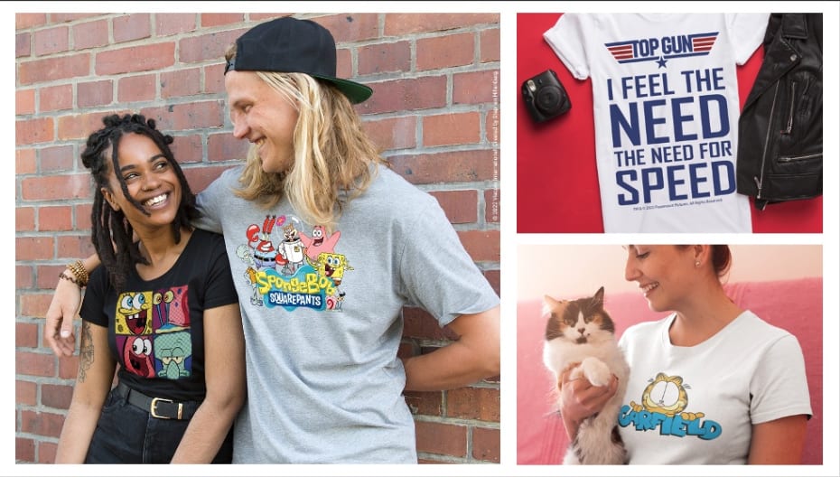 The first designs will include I Feel the Need for Speed Top Gun t-shirts, Flashdance logo and What a Feeling! hoodies, Garfield LASAGNA lunchboxes and Saturday Night Fever posters. The designs will be a mixture of image classics and newly created designs created by Spread Group.